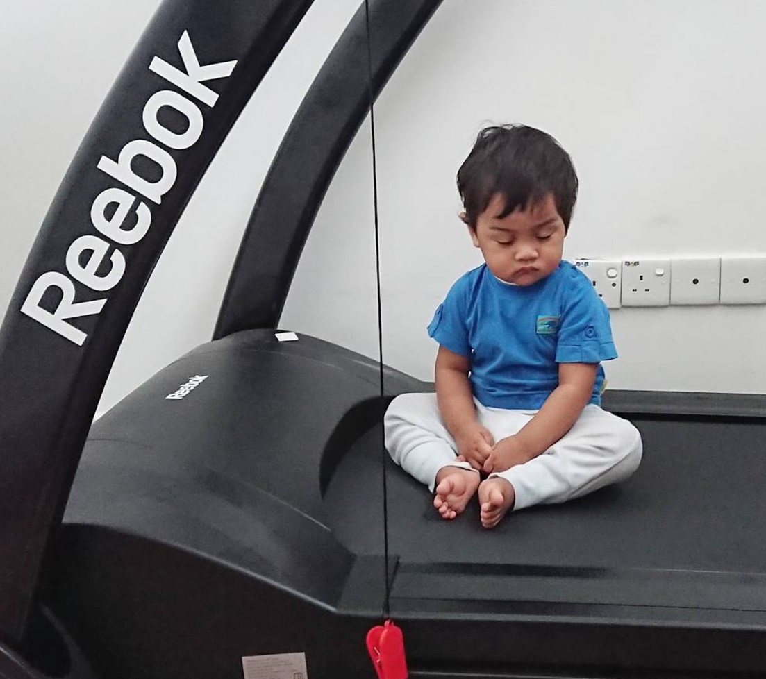 Dan sekarang.. dia dah seronok nak bertreadmill ! Haaa.. dah pandai nak tekan butang untuk kasi laju. Jalan pon terkengkang kengkang.. ada hati nak laju. Huhu.. Sikit lagi.. dia akan mula bergaduh dengan abang dia lak.. berebut mainan ! Hurm. Baru nak pulih dari tekanan darah tinggi. Hahahaa..